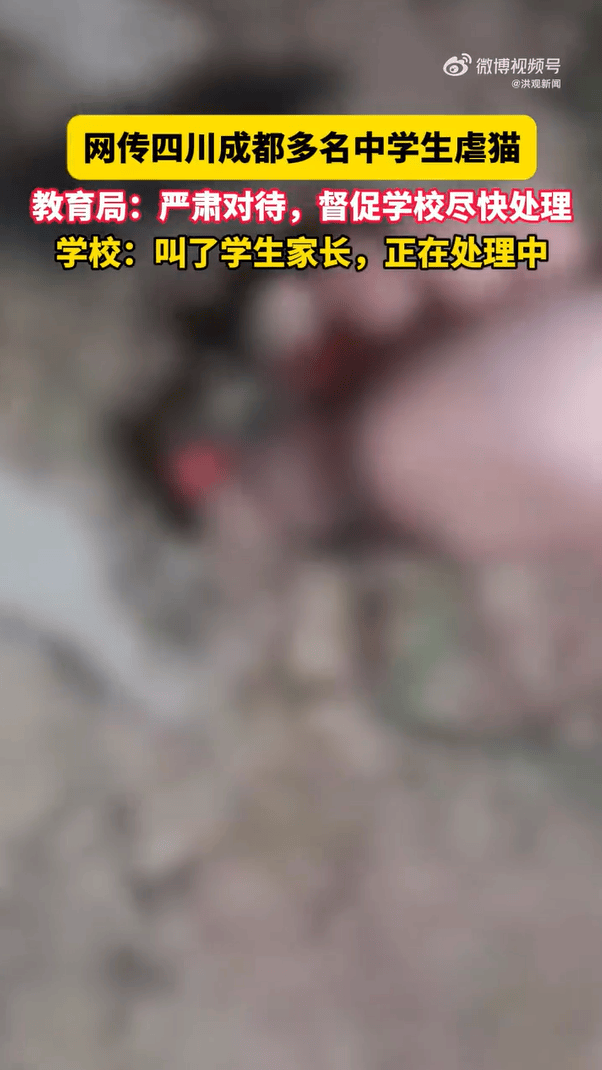 日前,有网友反映,四川省成都市大邑县安仁镇学校八年级二班4名学生,买来猫后用打火机烧小猫,用石头砸猫脑袋,用脚将猫踹飞,还将相关视频发在网上,并叫嚣“看不惯来打我,我还要继续”。