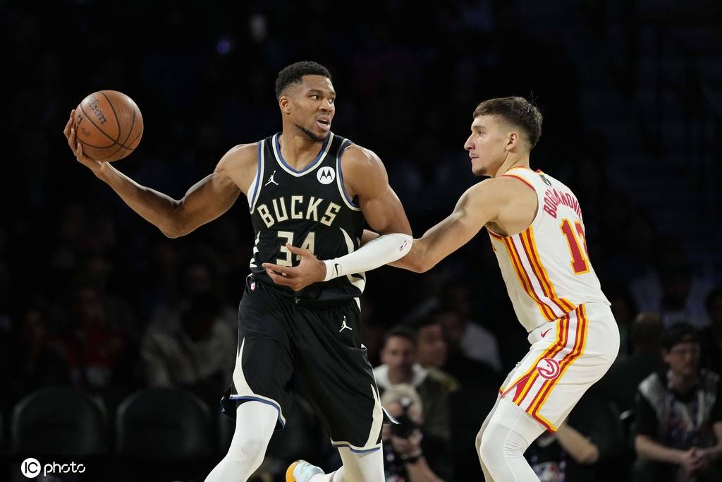 【搜狐体育战报】北京时间12月15日NBA杯半决赛,雄鹿在拉斯维加斯对阵老鹰,最终,雄鹿以110-102击败老鹰。阿德托昆博32分14篮板9助攻,杨35分7篮板10助攻。