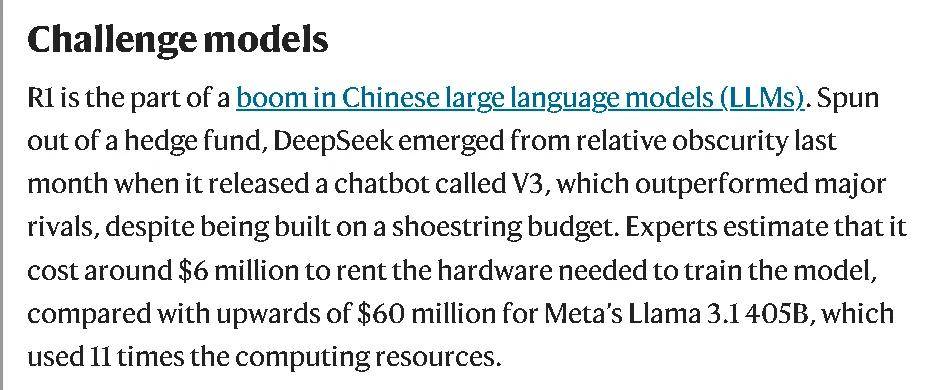 《自然》亦在报道中提到,一个在OpenAI o1模型上需要花300英镑完成的工作,在DeepSeek R1上只需要不到10美元。