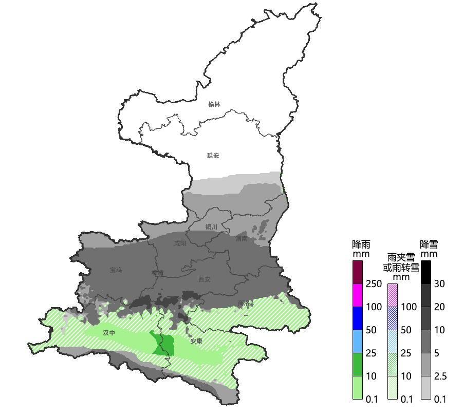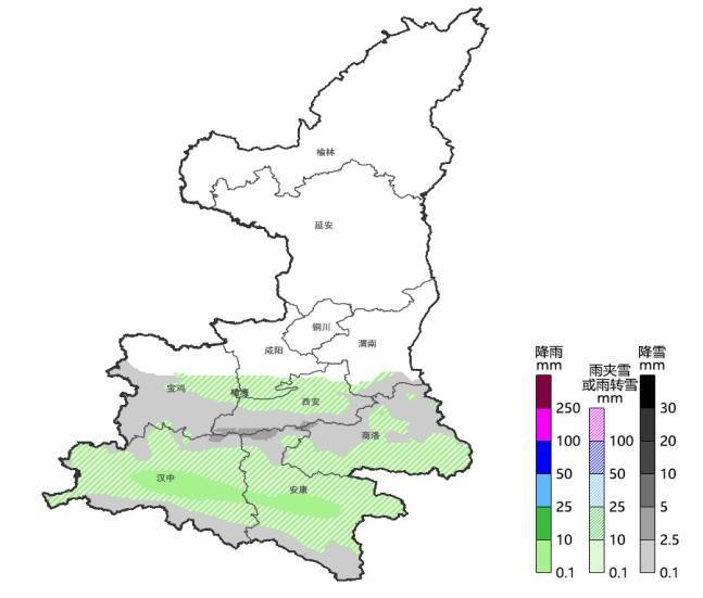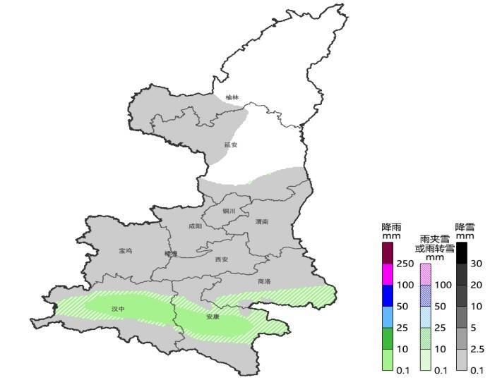 1月31日(初三)陕北西部、关中中东部、陕南东部有小雪(0.1~2毫米),陕南中西部有小雨(0~3毫米)(图2)。