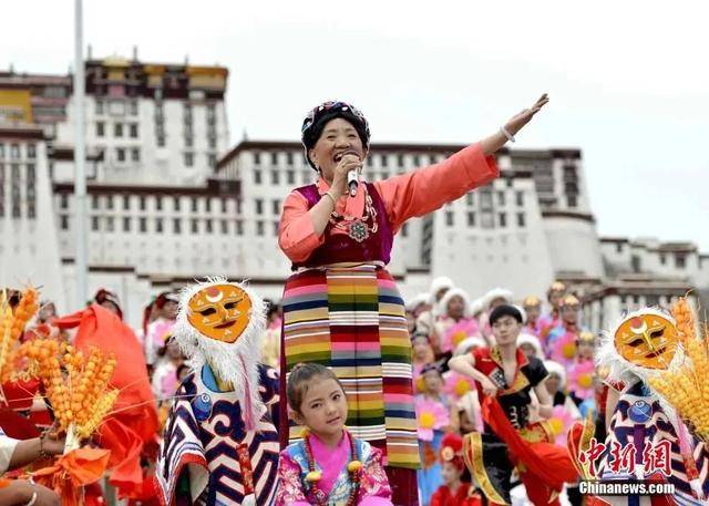 2015年,歌唱家才旦卓玛在布达拉宫广场演唱《再唱山歌给党听》。李林 摄