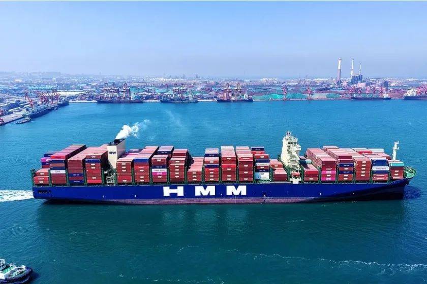 山东港口青岛港,装载外贸集装箱的货轮驶出港口。(图源:视觉中国)