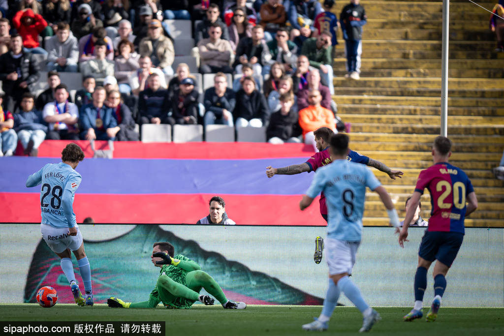 第15分钟,塞尔塔闪电扳平比分!马科斯-阿隆索抢断后发动反击,巴勃罗-杜兰右路传中,什琴斯尼出击失误,伊格莱西亚斯抢点破门,塞尔塔1-1巴萨!