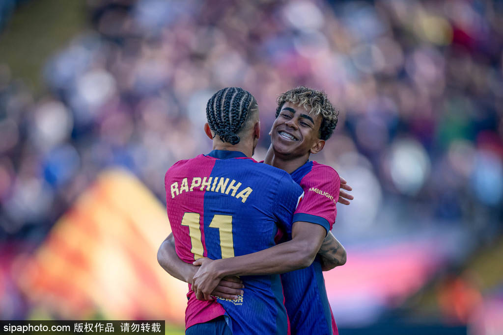 第68分钟,巴萨迅速扳平!亚马尔右路精准传中来到禁区,拉菲尼亚头球冲顶破门,巴萨3-3塞尔塔!