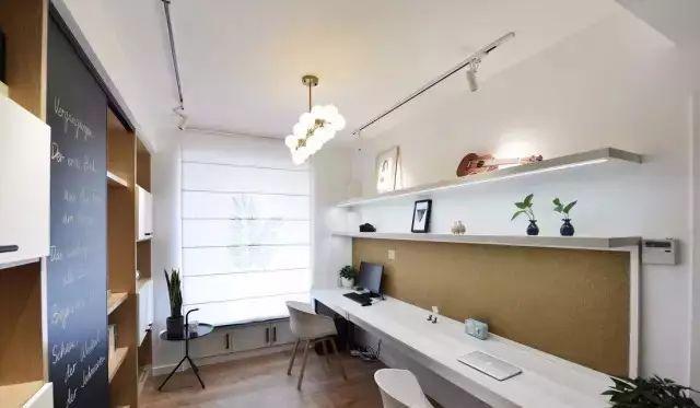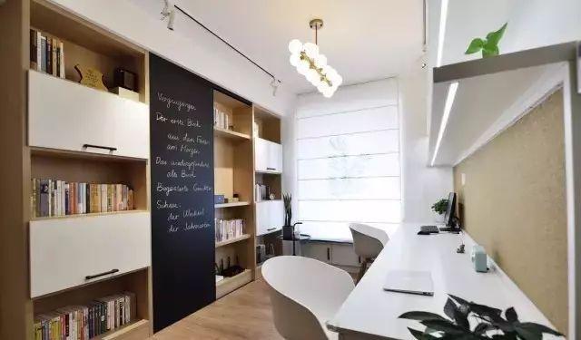 ▲两人一起学习,整个书架完全满足需要,中间有一面黑板墙,自由画画写诗。