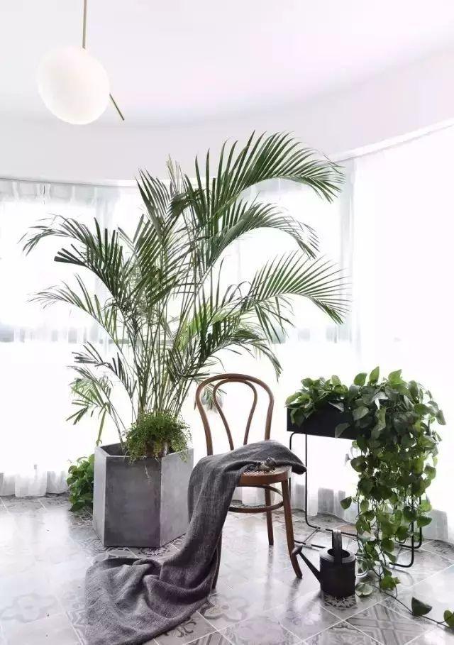 ▲阳台用白色窗帘环绕,带来朦胧典雅的格调。 绿色盆栽充满了新鲜活力,其中一把木椅,一条灰色的毯子,随意。