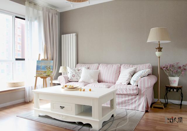 客堂,布艺沙发显得和温和委婉,并且色彩不多,都是高雅的亮色,以是看下落落洪量。