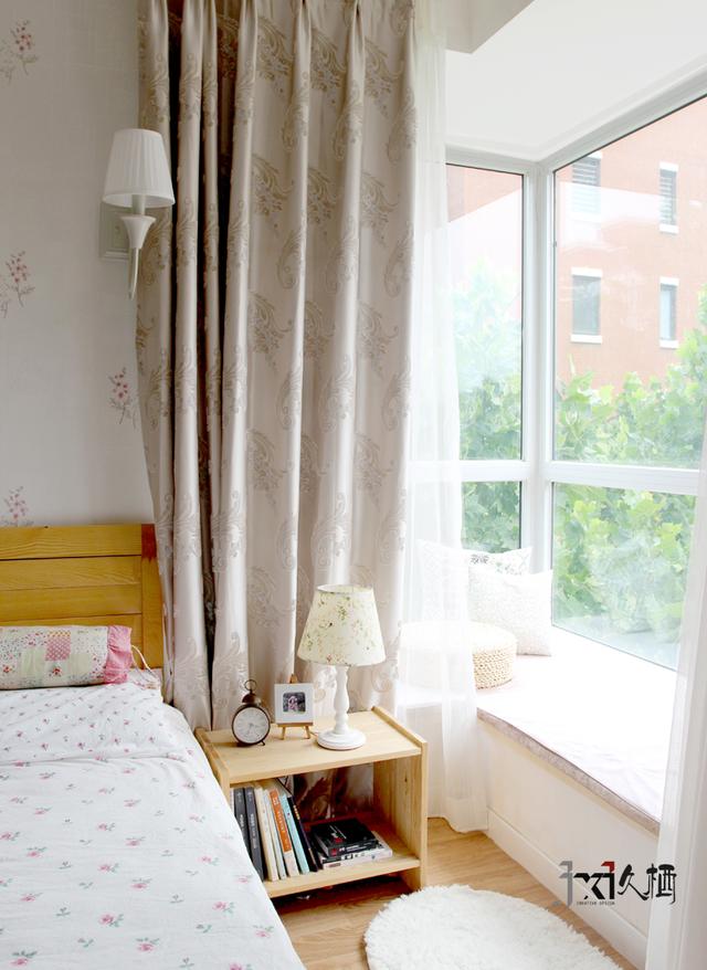 寝室是我最爱好的了,开始从色彩而言,高雅;其次原木的床体显得很天然。