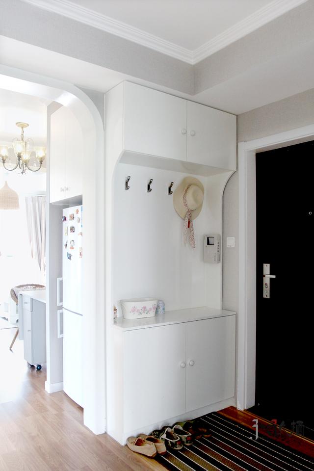 入户,右手边做了个玄关柜,而转角的场合,做了个收纳冰箱的空隙。
