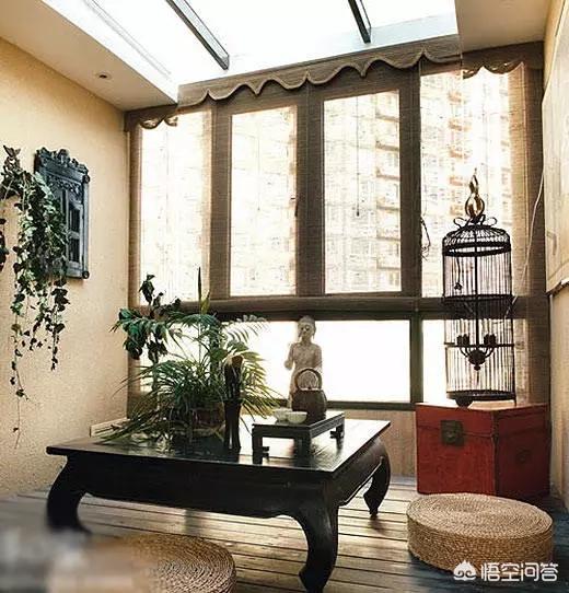 能带来阳光与好气氛的窗边边际,确定不能放过,既然是茶室,那就将古色古香进行毕竟。精致的鼓腿茶几仍是开始,坐垫则采用了四序皆宜的蒲团,边际的赤色古典收纳箱,既能收纳又能承载起这只别具风韵的鸟笼。茶几上摆放的一尊佛像,化妆选取风格的同时,展现出主人的崇奉。结果,别忘了用造型幽美的绿植作一点睛之笔。