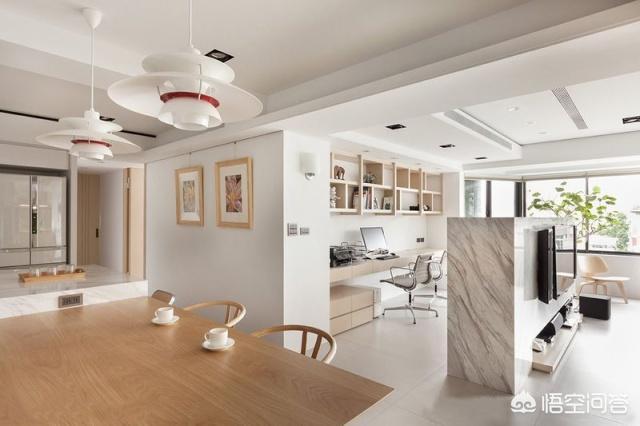在我可见由于餐厅有餐桌不妨动作书桌运用的便当前提,以是它是比拟符合兼具书斋运用的空间,在墙面减少书橱或置物隔板的安排,书斋的空间就可产生。