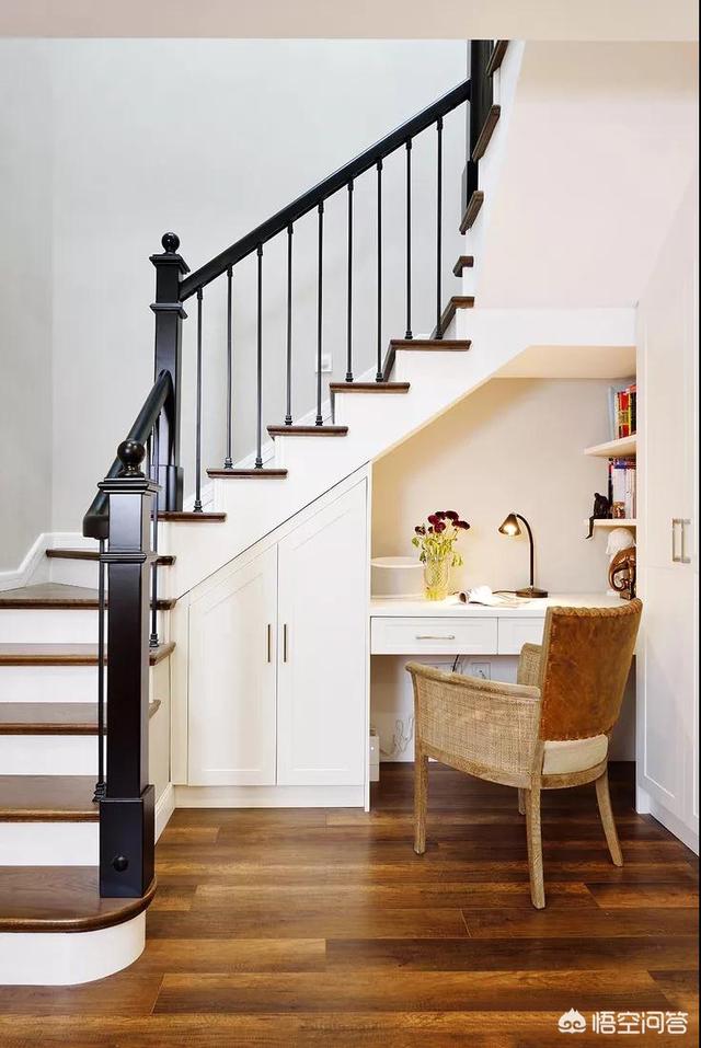 ⑤在楼梯下方安排“边际”书斋。楼梯下方是被人们渐渐关心起来的“宝藏地带”,除了树立收纳空间很“利害”,也是很好的“边际”书斋的树立空间。