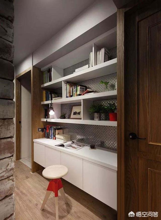 小本领:想要在走廊树立书桌+书架的形式,走廊的宽度不及也没接洽,墙体可拆改的情景下,将墙体向房间内挪动书桌或书橱须要的尺寸,还会使走廊变得“宽大”起来。