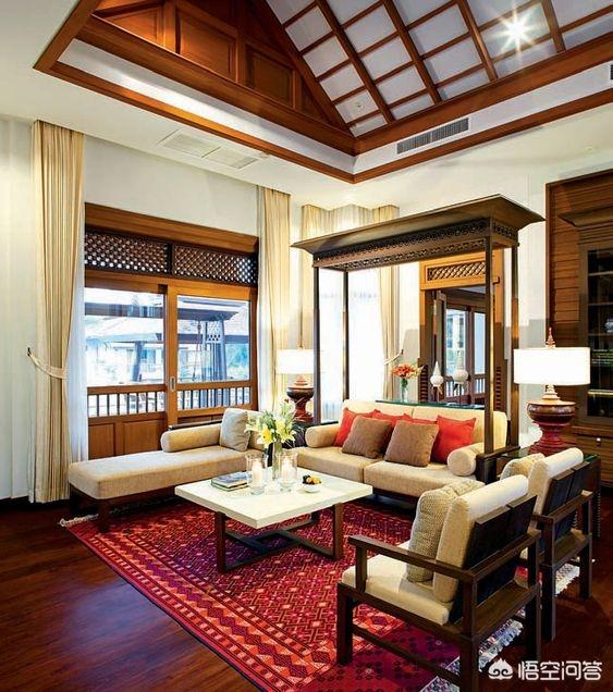 如泰式装修,会采用暗赤色、褐色等深色彩,搭配古典民族特性的保守图案与释教元素。
