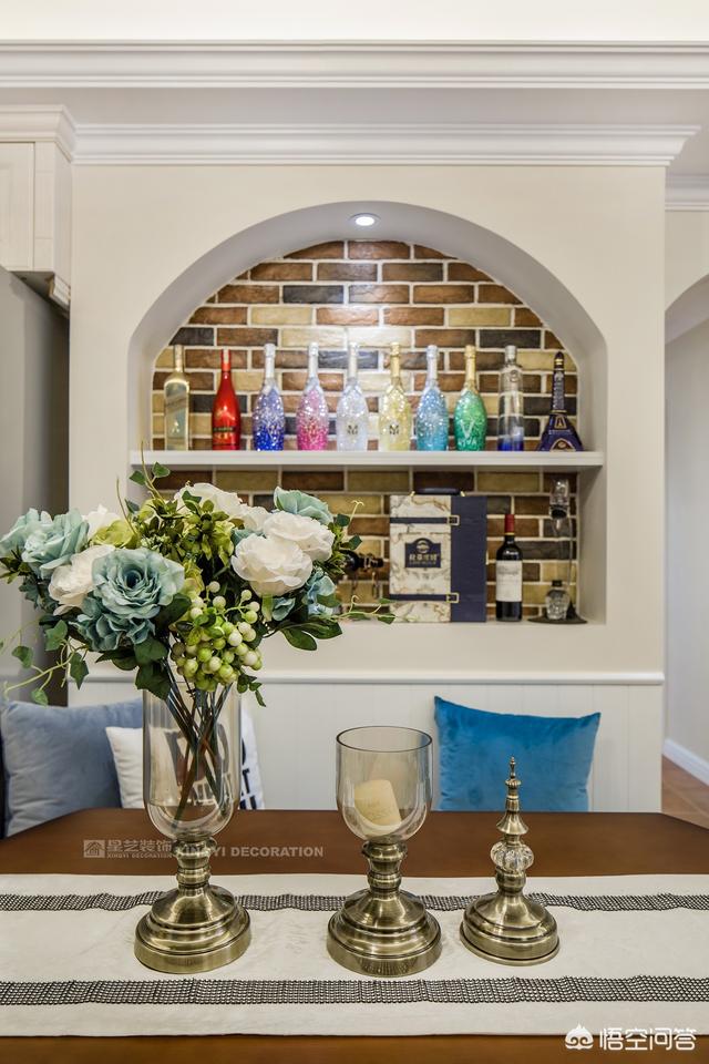 美国地中海休闲氛围餐厅的软装饰品是我最常见的,大部分都是一束鲜花,对于一些比较有特色的饰品,这两个案例最吸引我的是瓶子的装饰效果,手工制品和五颜六色的瓶子在这个充满阳台味道的休闲空间,喜欢爱情,