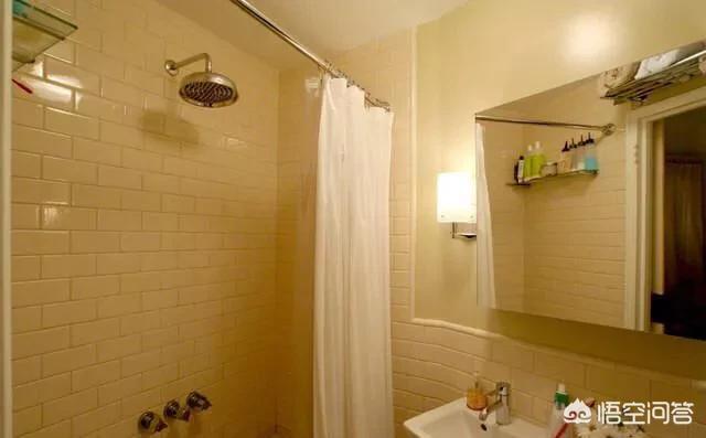 淋浴和洗漱台用浴帘隔开,不允许水溅到任何地方,采用单一公寓装修设计。