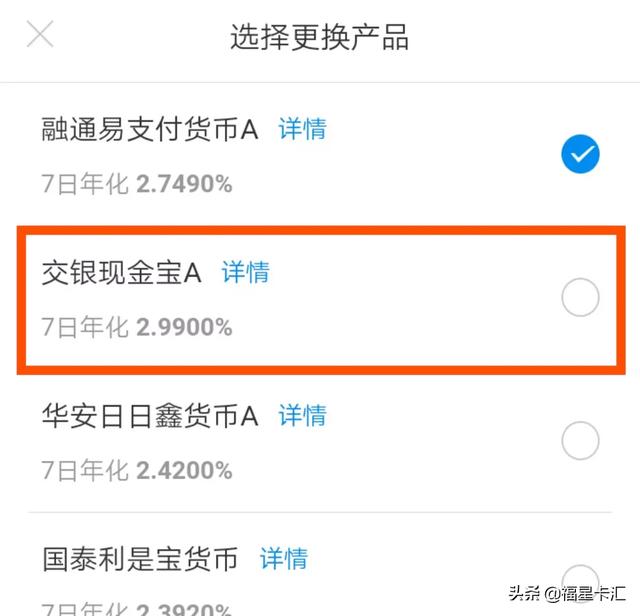NO4:微信零钱统一曲以来有良多用户认为零钱通收益率不断都是比余额宝收益率略高其实并不是如斯,比力细心的人群应该都晓得自从零钱通上线以来,零钱通利率不断都不如余额宝傍边货币基金收益率高活期存款计算器。近期微信也是刚引进了家货币基金,产物收益率与付出宝略有点差距到达了2.915%。10万元存款1天利钱收益7.98元。