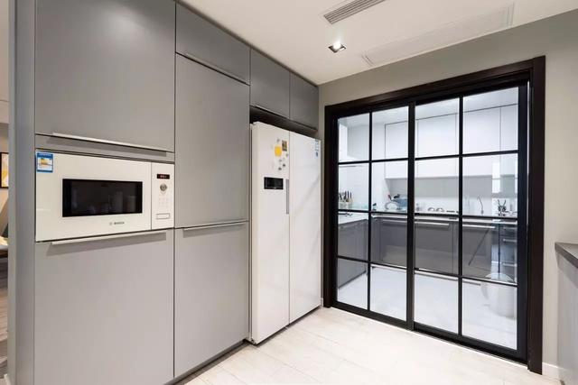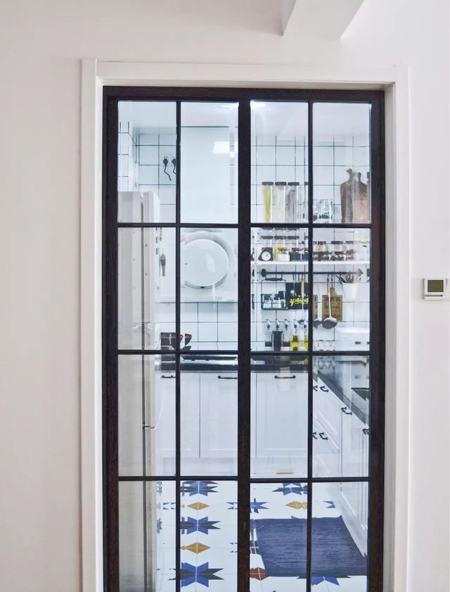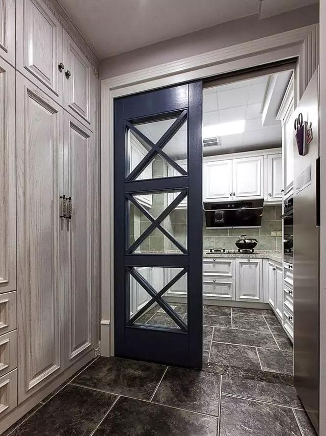 12、厨房门的颜色厨房门拆修效果图,与它旁边的柜体同一黑色,好比下面那个与玄关鞋柜靠在一路的厨房门,则以白色的搭配,呈现出一个文雅高档的气氛;