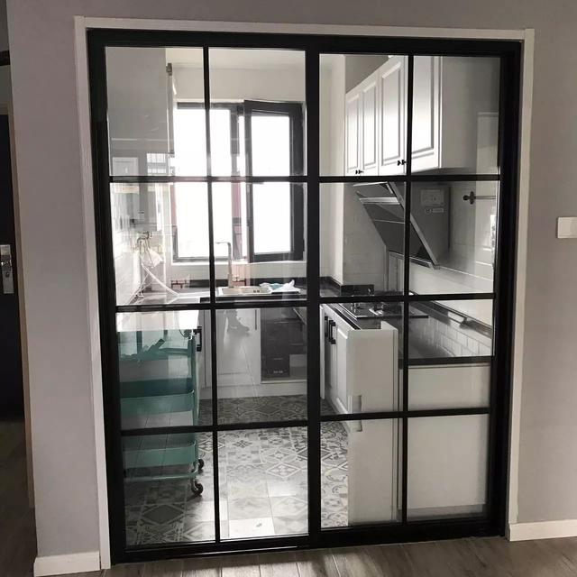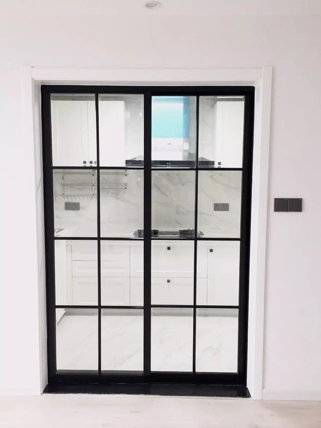 黑色与白色一样做为典范色厨房门拆修效果图,用在厨房门上同样是很简单大气,因为厨房里的电器一般城市有黑色的玻璃面,所以用黑色的厨房门搭配根本视觉也是很美妙的;