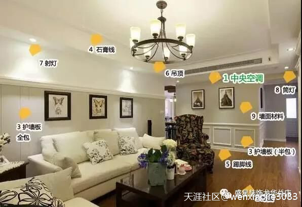 石膏线:用于吊顶,但如今有的拆修也会选择不要石膏线,吊顶越来越简约,逃求个性扮装修图。