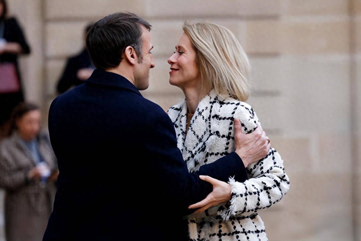 马克龙欢迎爱沙尼亚美女总理真热情!美女总理格纹衣配裙,很吸睛