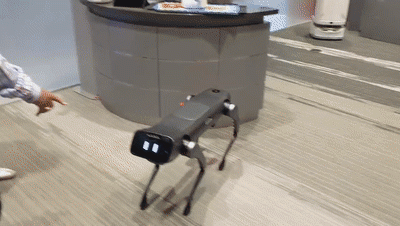 在主办方邀请之下,普渡机器人远渡重洋,来到美国圣地亚哥,携四足配送机器人D1和高峰期畅通无阻的配送机器人“巧乐送”精彩亮相一年一度的高通5G峰会现场。参会人员与普渡机器人亲密接触,近距离感受配送机器人所带来的强烈科技感与智能化冲击。尤其是四足配送机器人D1的酷炫“科技范”在展区内闪亮出圈,不管是起身行走,还是避障退让,D1所展现的卓越的运动能力和平衡能力吸引了在场人士纷纷驻足拍照观摩。