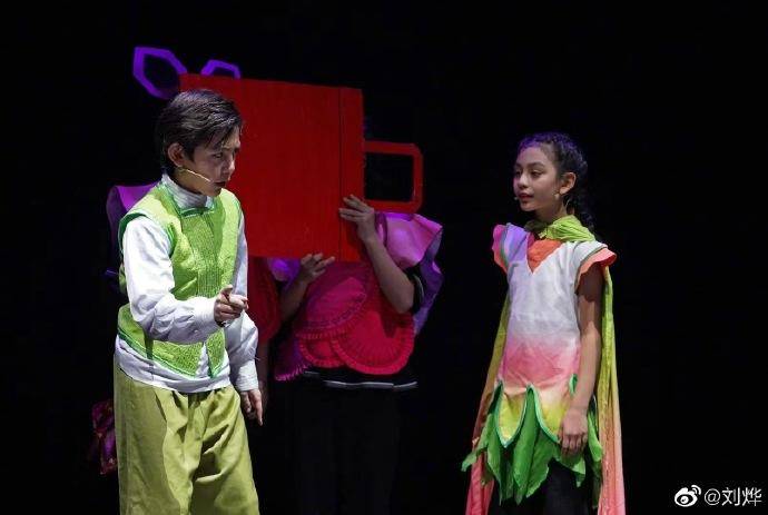 刘烨儿子诺一(左)和女儿霓娜(右)演出照,图据刘烨微博