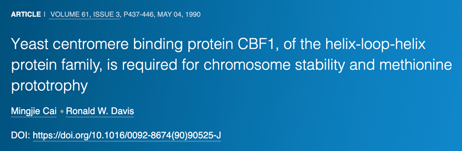 于斯坦福大学攻读博士学位期间,蔡明杰与导师 Ronald W. Davis 针对酵母的着丝粒进行了大量的研究。在其获得博士学位的 1990 年,他们的发现刊登在顶级期刊 Cell 之上。蔡明杰是除了通讯作者之外的唯一作者。