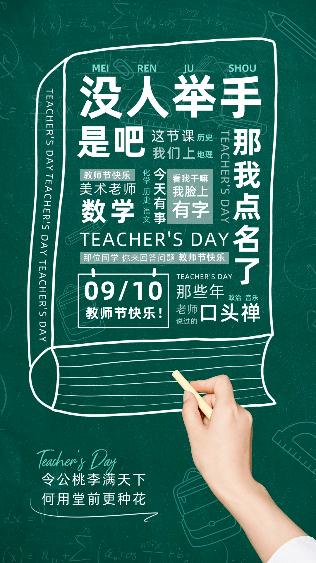 一支粉笔,写下的是真理,擦去的是功利;三尺讲台,举起的是别人,奉献的是自己;一间教室,放飞的是希望,留下的是泪滴。祝老师教师节快乐。