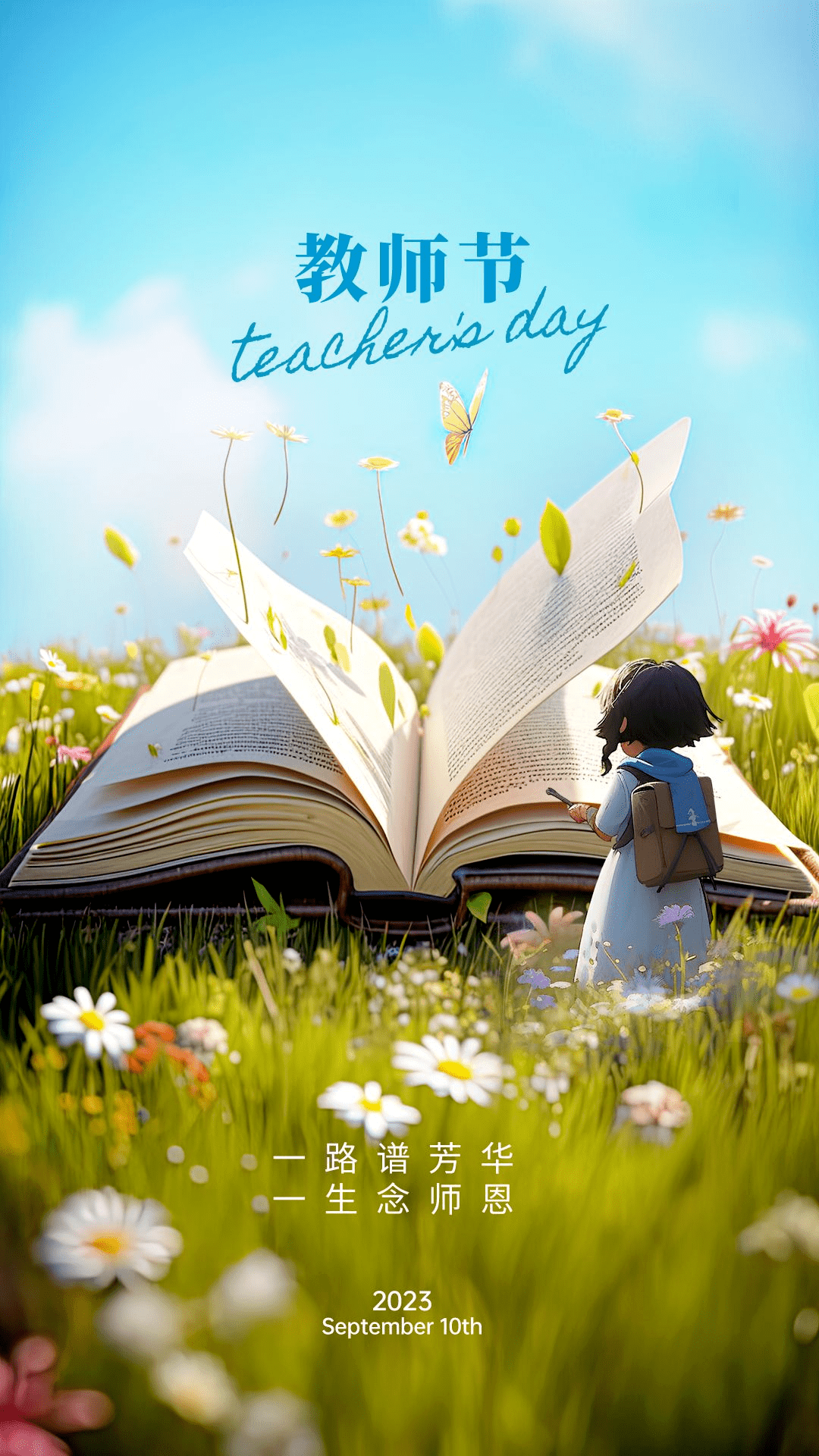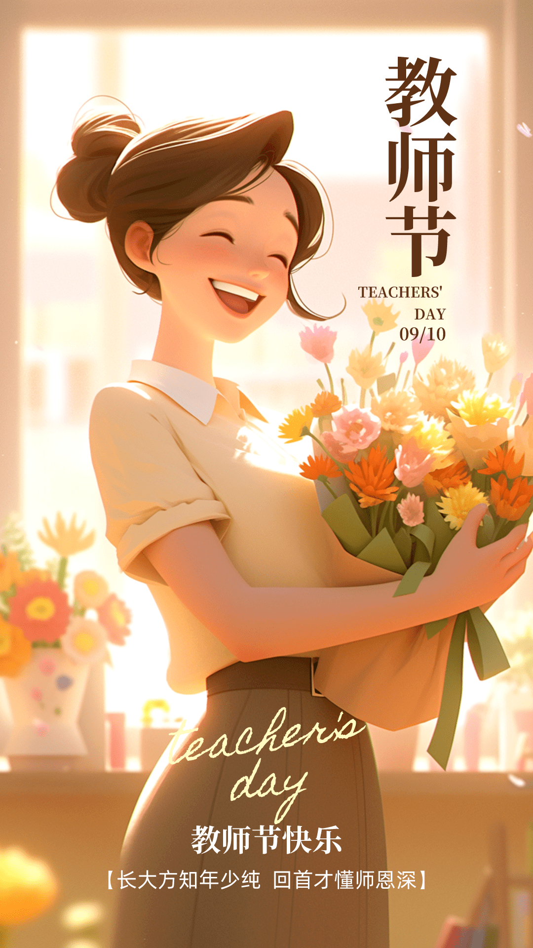 教书育人万世芳,行舟苦度美名扬;春来秋去汗水淌,抱得桃李满园香。离别多年心感念,犹记恩师心中想。值此节日送祝愿,浇灌硕果业兴旺。教师节快乐!