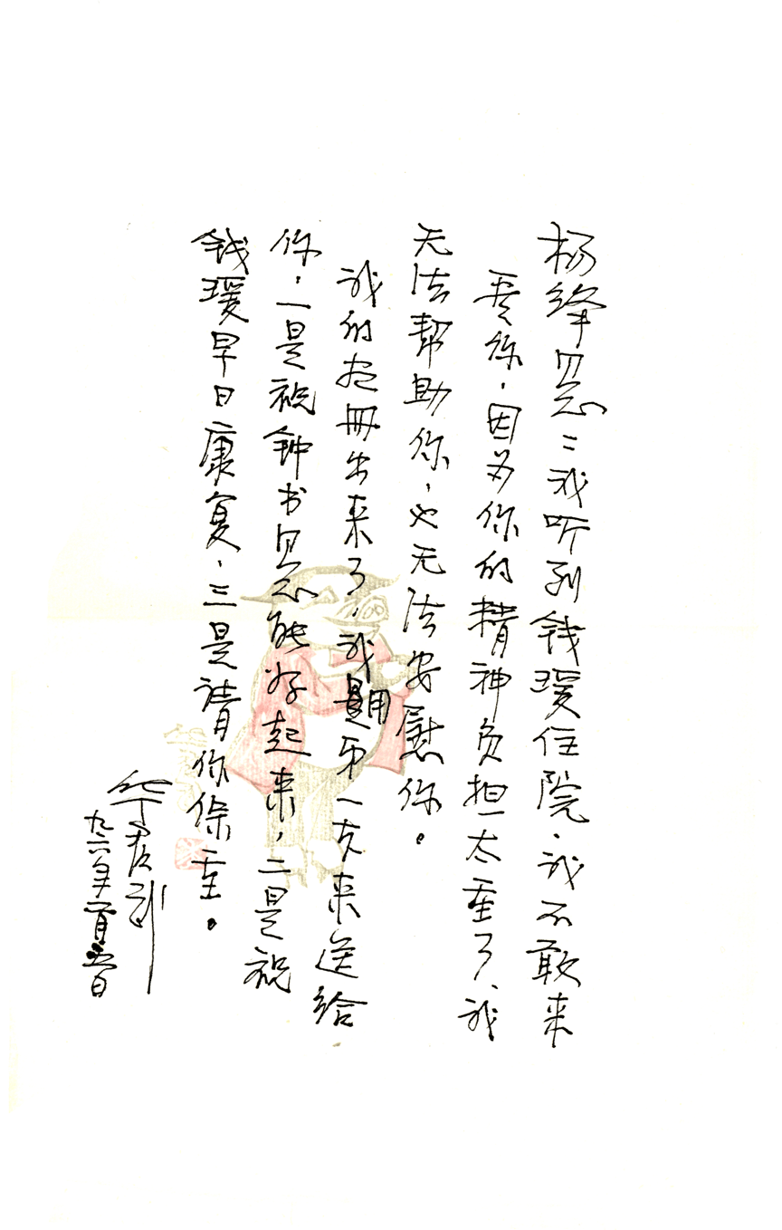 1996年,钱锺书和杨绛的爱女因罹患脊椎癌入院,华君武在给杨绛的信中写道,“我听到钱瑗住院。我不敢来看你,因为你的精神负担太重了。我无法帮助你,也无法安慰你。我的画册出来了,我用第一本来送给你,一是祝锺书同志能好起来,二是祝钱瑗早日康复,三是请你保重。”