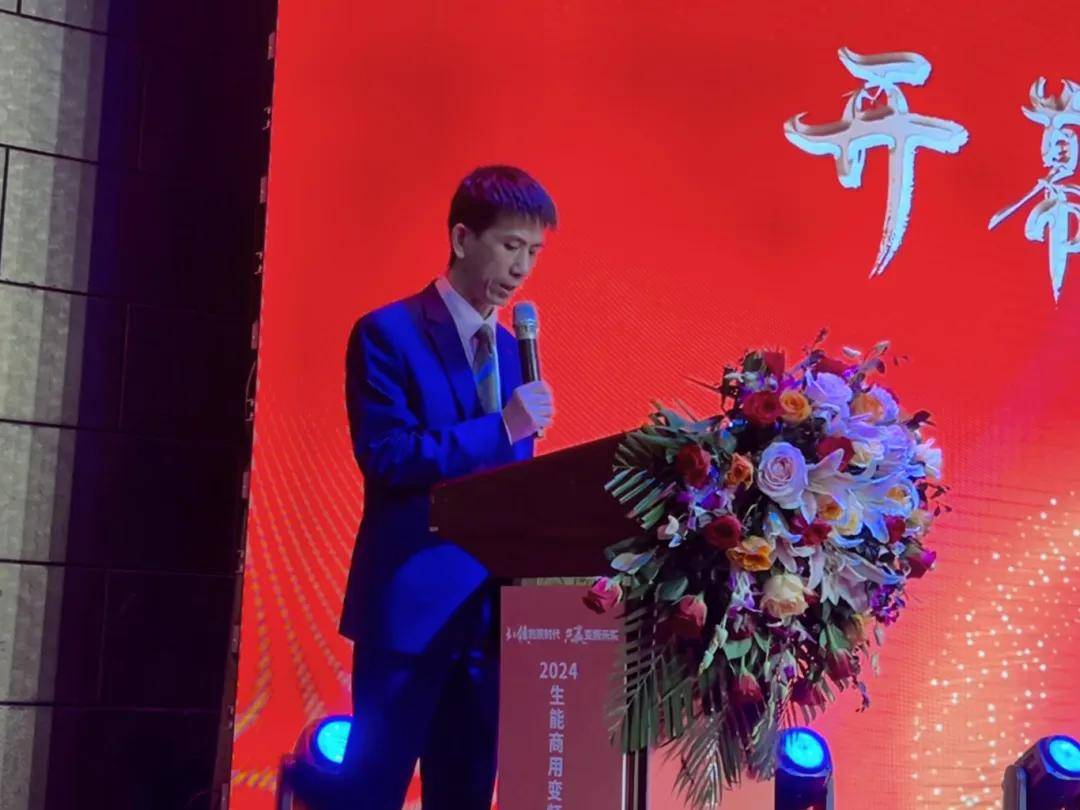 会议伊始,生能董事长黄道德发表致辞对各位的到来表示热烈欢迎和衷心感谢。黄董表示生能作为热泵行业领军企业,一直致力于推动热泵技术的创新与发展。在过去,生能一直是小机组、家用机组采用变频技术,并且一直是常温60-80度技术领域。今天,我们生能推出空气能商用工程大机组全直流变频新品,并且我们还要把空气能热泵做到水温130-150度产生蒸汽作为消毒和烧开水使用。生能商用全直流变频新品采用直流电驱动和变频技术,提高了热泵系统的能效比,也让设备在运行中实现了智能化控制,进而达到节能减排、降低运行成本的目的。同时,变频技术还赋予了设备更强的适应性和灵活性,使其能够应对各种复杂环境和变化。