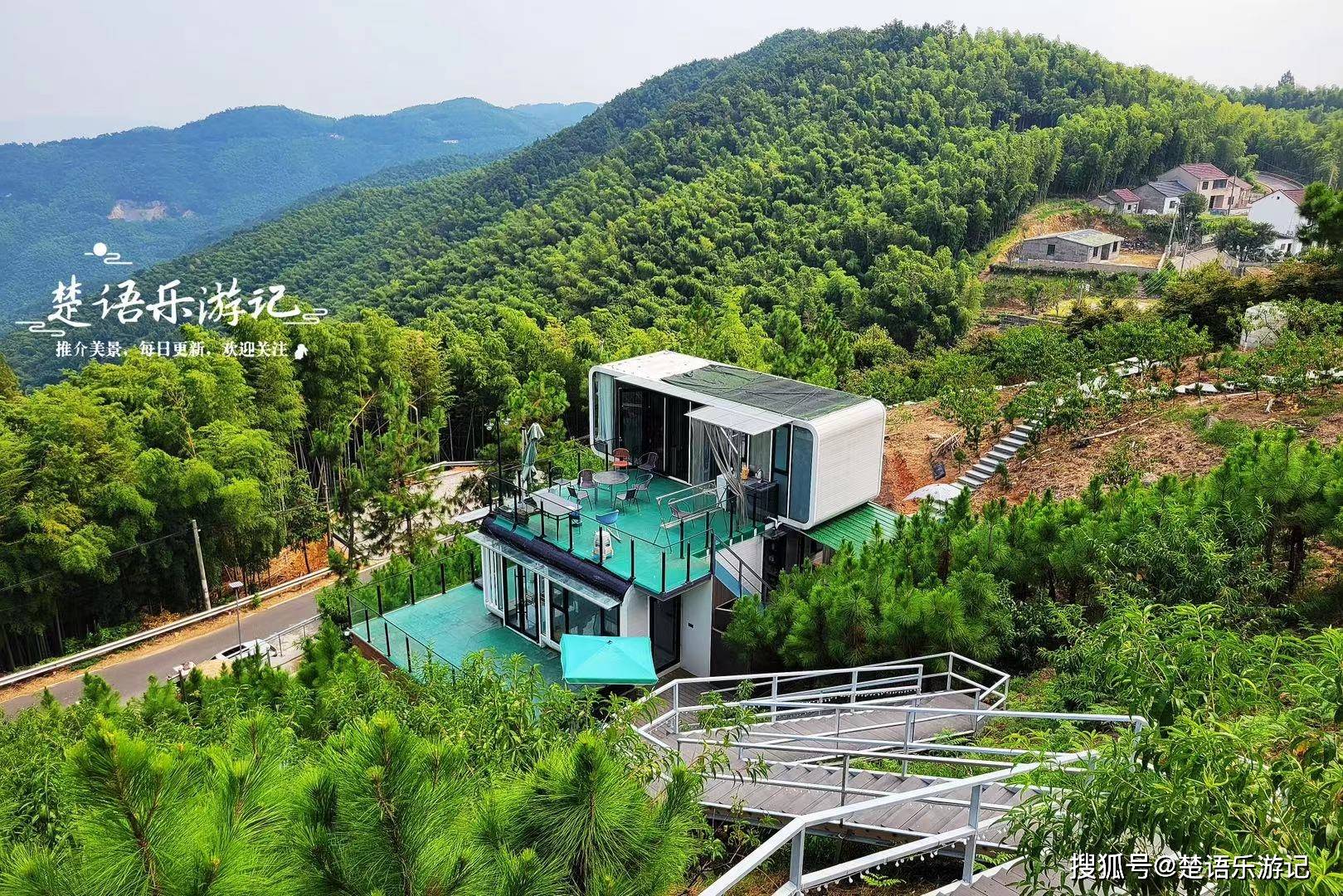 另外,在山顶的北面山坡上有一些民宿,它的门前同样是木板观景台,上面布置有桌椅,旁边是绿树,绿树掩映着平台,清幽宁静,视野开阔,在这里沐着山风欣赏风景或者品茶聊天,更加的惬意与悠然。
