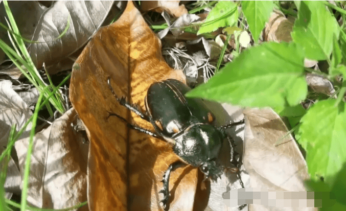 当天,工作人员在保护区发现了只巨大的甲虫,它的头面呈光亮的金绿色,长得和别的甲虫很不一样。