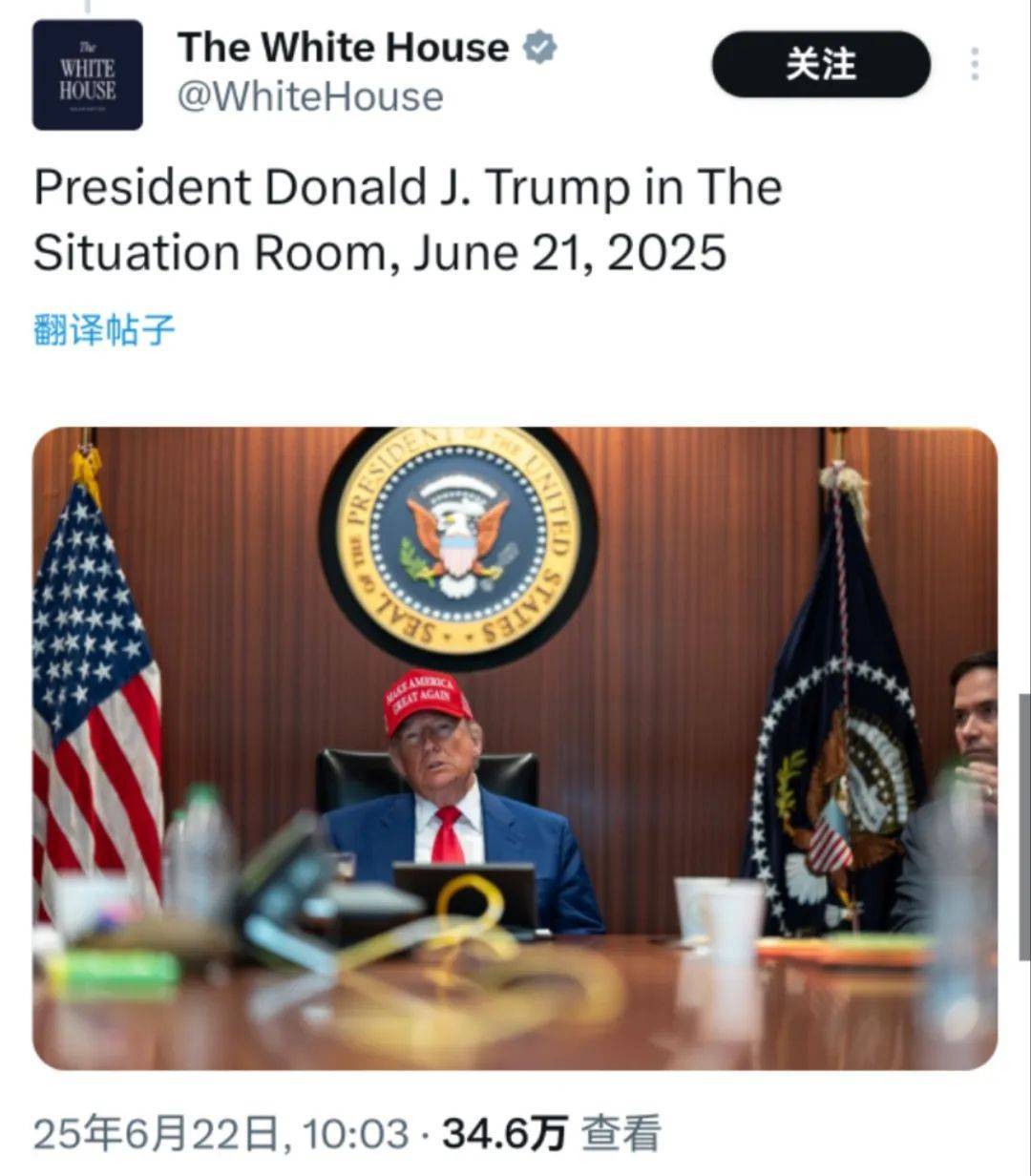 值得一提的是,当地时间6月21日晚,美国白宫公布了战情室内部的最新照片,照片中美国特朗普和高级国家安全官员正在实时监控美国对伊朗核设施的空袭。