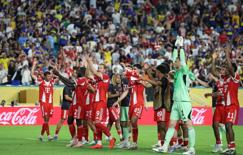 6月20日,拜仁慕尼黑队球员赛后向观众致意。当日,在美国迈阿密进行的2025年国际足联俱乐部世界杯(世俱杯)C组小组赛中