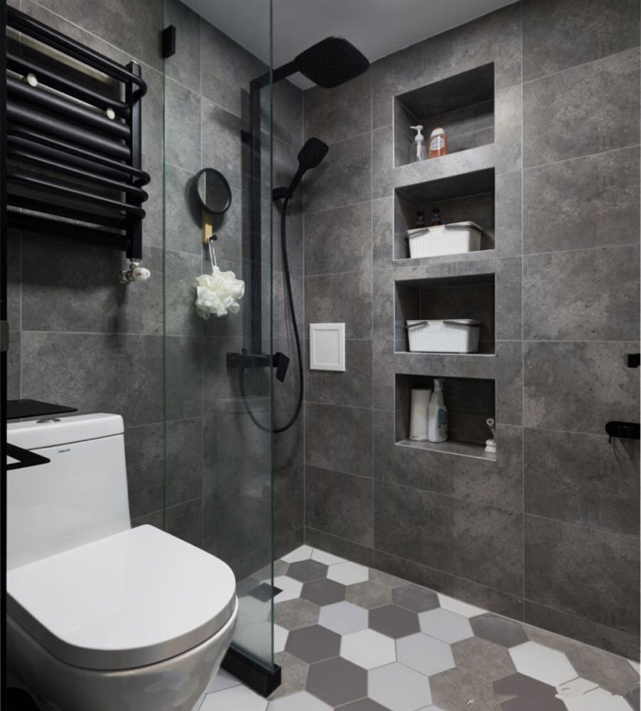 因为卫生间的空间较小,用于收纳的空间天然也就是较小,而淋浴间又因洗澡用品较多,所以要有必然量的收纳空间来放置。