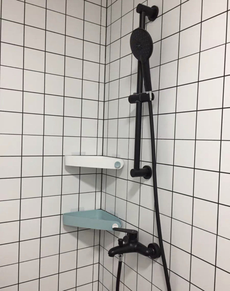 履历第一次拆修时不晓得若何来处理,此次拆修时,按照生活经历就总结出利用「拖鞋沥水架」,放在卫生间淋浴室里,如许拖鞋就能够做到清洁卫生的摆放,同时仍是属于免打孔安拆 ,不毁坏瓷砖。