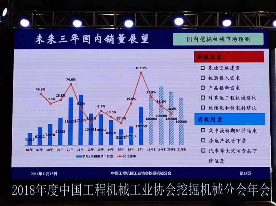 总结:猜测2019年发掘机商场,最乐观猜测仅仅也只是10%-20%的增加,大多数坚持了慎重的猜测态度— 上下10%的正负增加;看来关于2019年,各企业基本上持慎重态度;